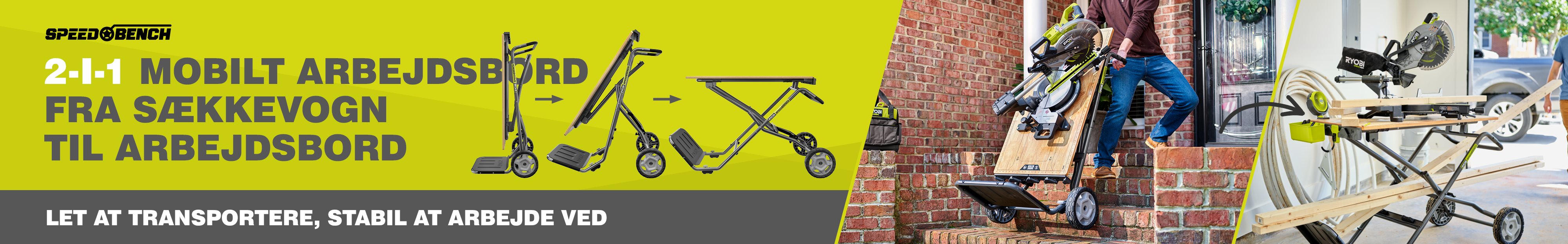 • Det mobile 2-i-1 arbejdsbord leveres med en brugermanual for nem samling. Derudover medfølger en RYOBI® LINK opbevaringskasse i medium størrelse samt to små LINK-skinner