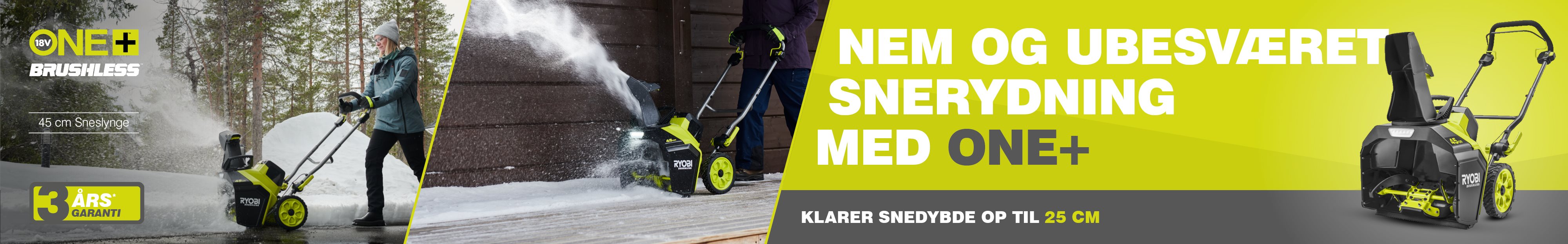 18V ONE+™ kulfri sneslynge er din nye bedste ven i vintervejret. Den klarer nemt snerydning på fortove, indkørsler og stier. Sneslyngen er designet til at arbejde sig gennem sne op til 25 cm dyb og slynge den op til 8 m væk.