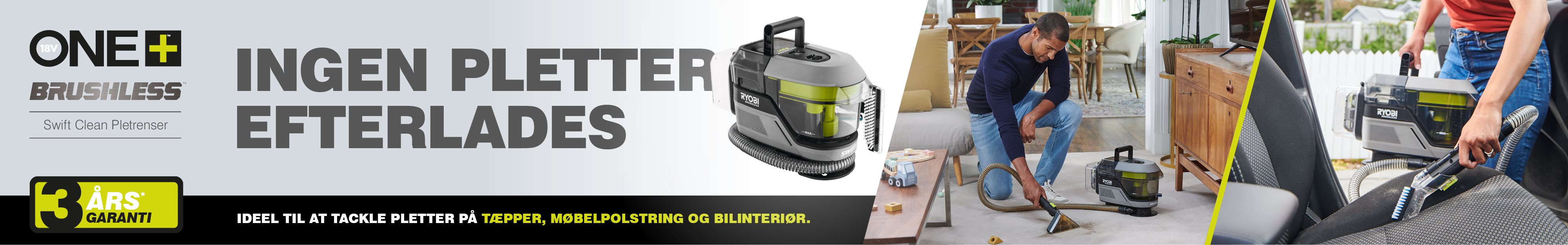 18V ONE+™ Kulfri Swift Clean pletrenser er ideel til at tackle genstridige pletter på tæpper, polstring og bilinteriør samt til hurtigt at opsamle spild og snavs.